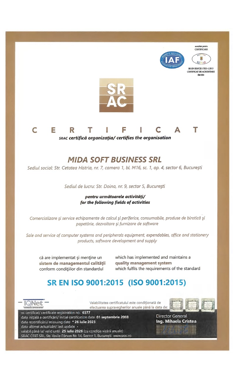 Mida Soft Business este o companie cu capital 100% românesc, înființată în anul 2003, având ca domeniu principal de activitate vânzarea de Produse și Servicii IT.